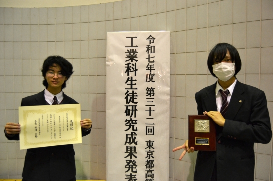 都立工業系高校の各校代表、18テーマ(口頭発表)の中から、「特別賞」を受賞しました。