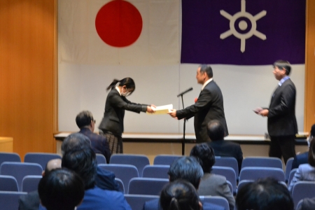 最後に、チラシのデザインをした、本校デザイン分野 長坂さんが表彰されました
