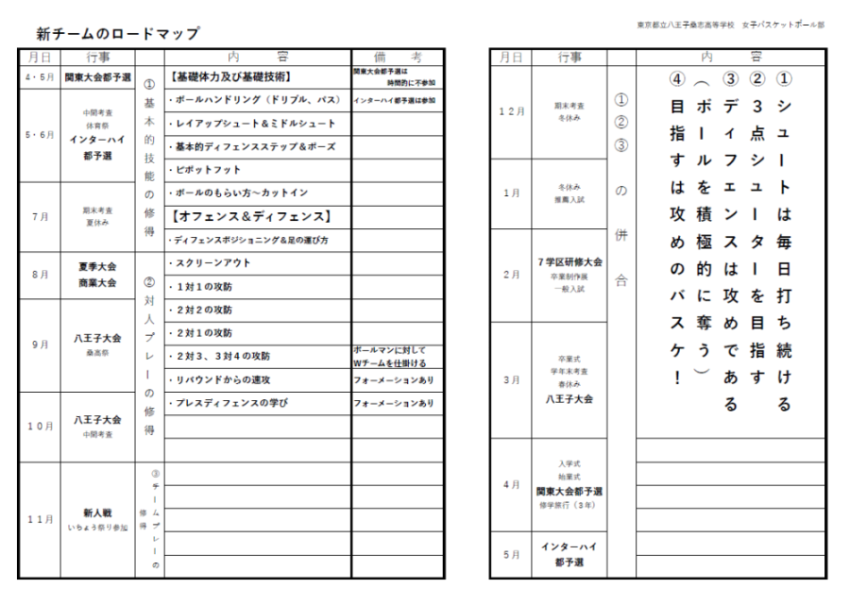 ロードマップ(練習計画)を参考までに記載してみました。